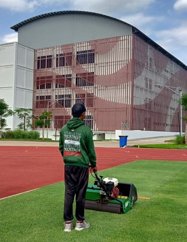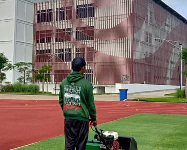Kami juga menyediakan SDM terlatih untuk melakukan perawatan Lapangan Atletik dan Perawatan Lapangan Sepak Bola berstandar Grade A